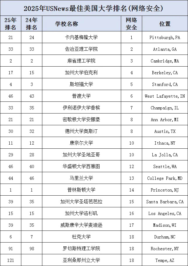 网络安全前10除了CMU、MIT、斯坦福和康奈尔四所私立大U,其余都是公立学校。