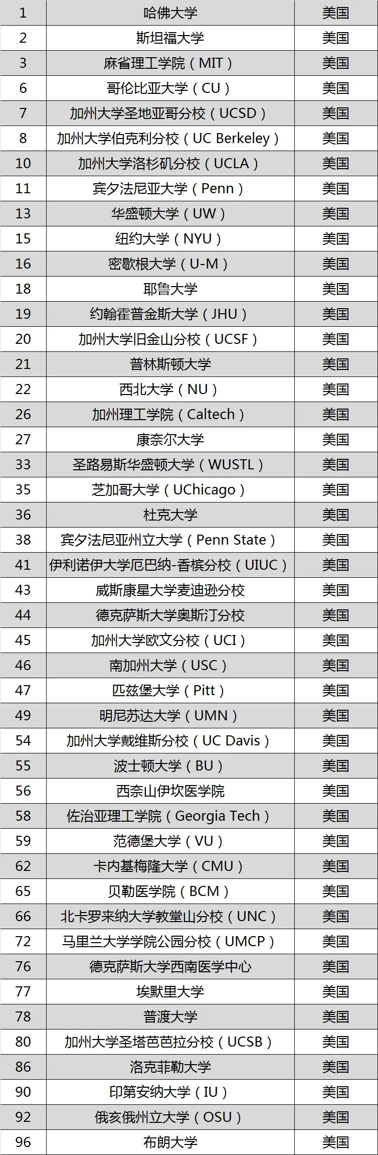 值得一提的是,加州系大学虽然是公立校,但是实力吊打一众大牌学校,3所学校跻身前十,4所学校进入TOP20。