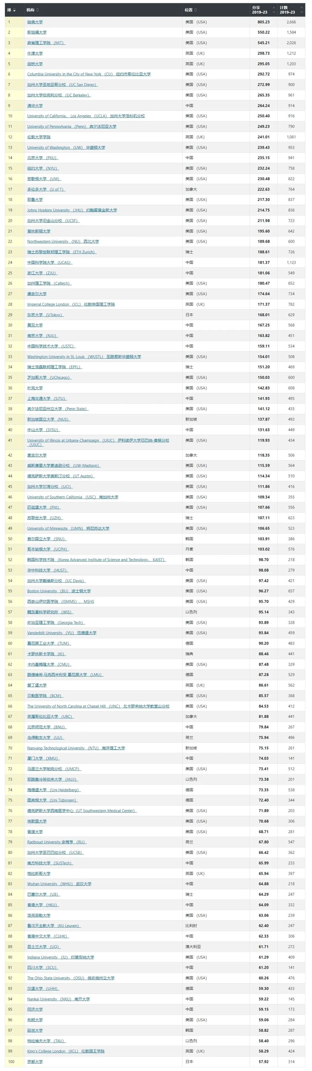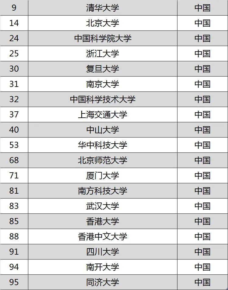 清华大学以一己之力闯入前十,北京大学位列第14名,两所学校太给力了!