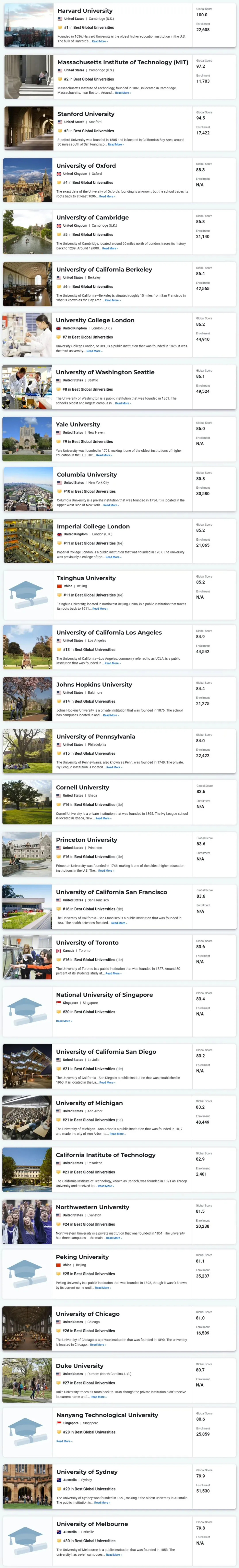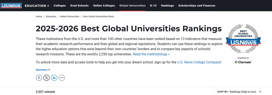 U.S. News官网于2025年6月17日发布了2025-2026年度全球最佳院校排名!
