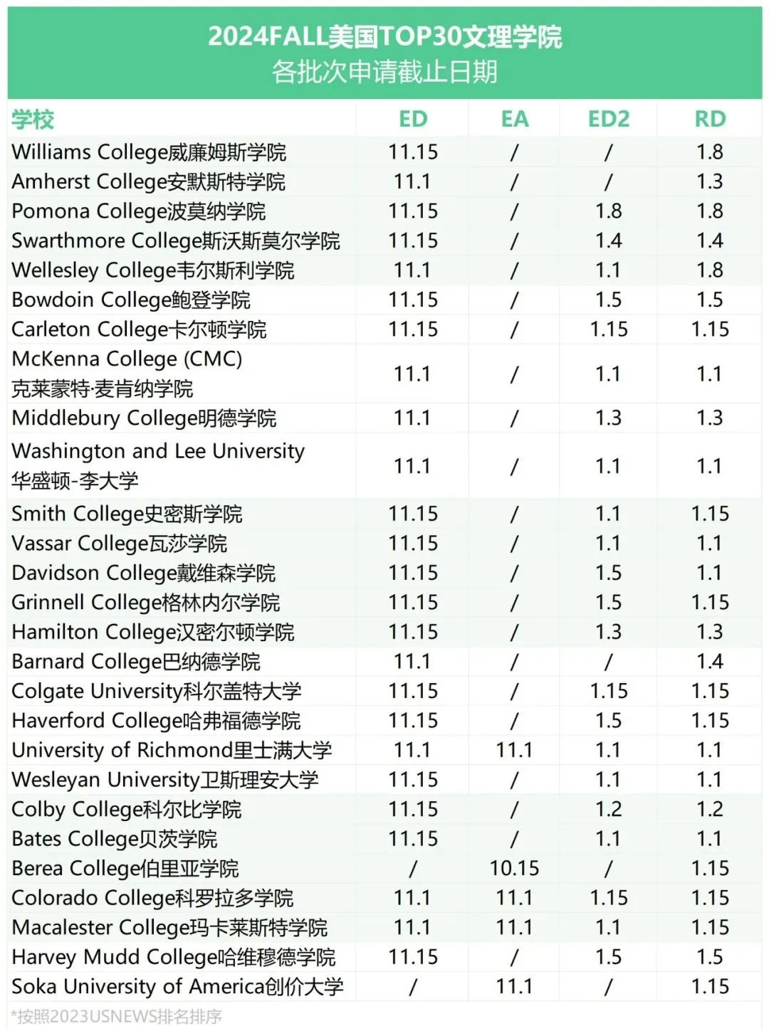 目前,美国各大综合院校和文理学院都公布了早申请政策、标化要求以及不同轮次申请的截止日期,预示着2024Fall申请拉开序幕。