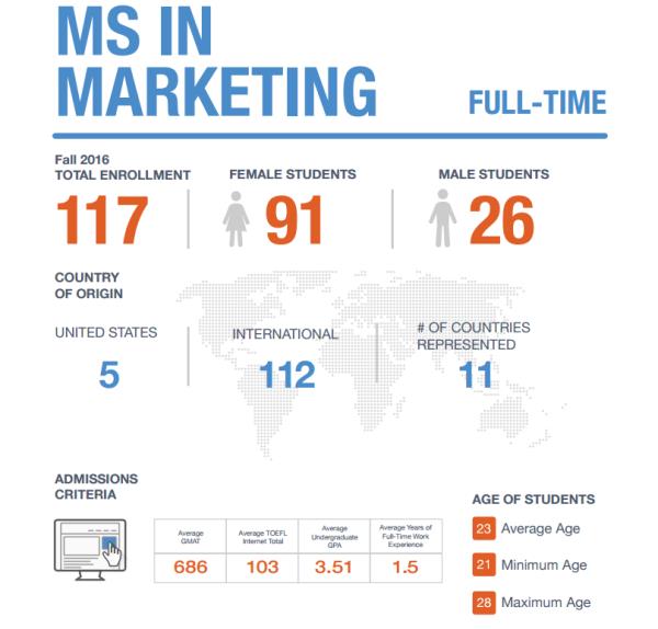 在美国大学申请里面,申请市场营销学生可以分成3大类:MBA-Marketing, PHD in Marketing, MS in Marketing,这3类中申请中MBA-Marketing 适合有工作经验或是有良好实习经历的同学申请。其次PHD in Marketing 适合立志从事学术研究和教学的同学申请。申请 MS in Marketing的占大多数,因为有些学校可以录取没有工作经验的申请者,所以对于无论是否是商科的或刚刚毕业的本科学生来说都可以申请。在申的时候一定要能够有突出自己适合的申请的背景优势。兆龙留学冯老师建议本科学生最好有过统计,媒体,传播方面的学习课程。比如申请人本科是学习美术设计,在申请时候就要注意适当增加自己在类似广告设计方面的背景,在申请时候就更有竞争优势,再如一个统计或数学的学生,在申请时候就要看到自己在数据统计,建模分析方面的优势。