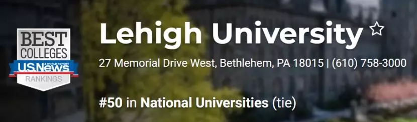 理海大学(Lehigh University)——也许你听起来并不耳熟。因为它向来低调,并不太进行市场宣传。 但是她确是爱国者联盟创始学校之一,被实誉为“隐藏的常春藤”!10年期间常年稳居在usnews综合排名top50位。