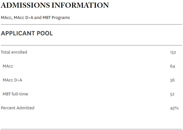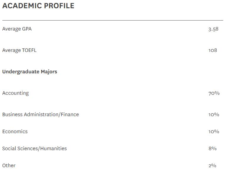 所有没有会计专业本科学位的学生都必须在秋季学期之前完成夏季强化课程。共15个学分。