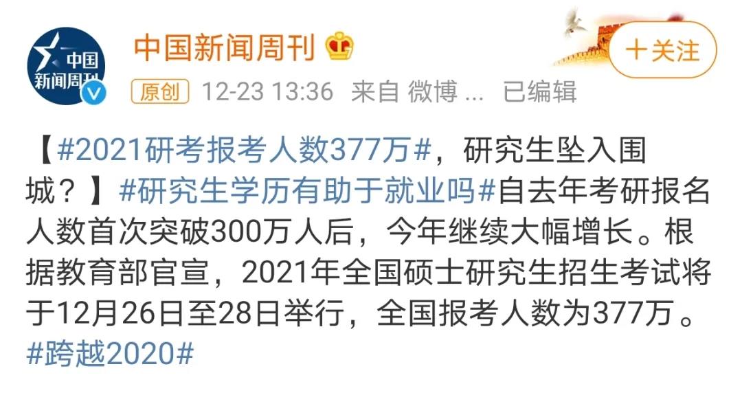 2021 年考研报名人数 377 万同比去年的 341 万新增 36 万人,即使在扩招的态势下依旧会有很多考生要面对“考研失败”的现实。
