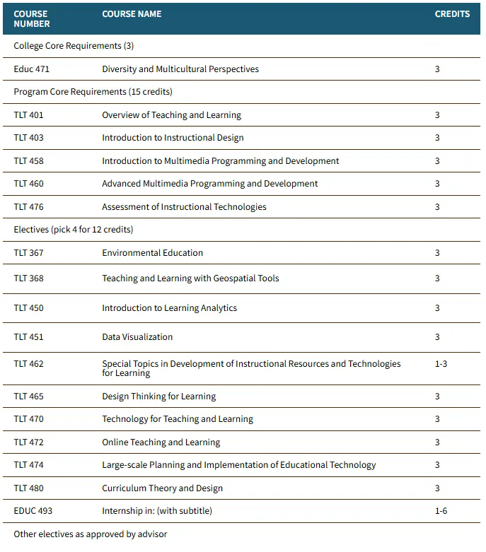 • Master's (M.S.) Instructional Technology 教育技术