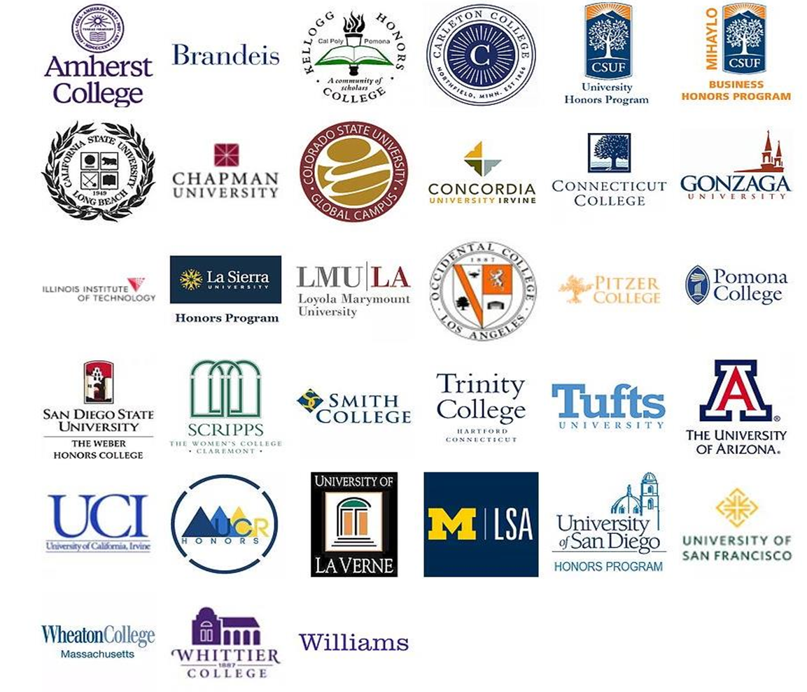 圣地亚哥峡谷学院的荣誉课程项目是HTCC(荣誉转学加州委员会)的会员,符合条件并且完成学院荣誉课程的学生将获得下图所有合作的四年制大学或者四年制大学的对应荣誉项目的优先录取考虑或者保证录取。