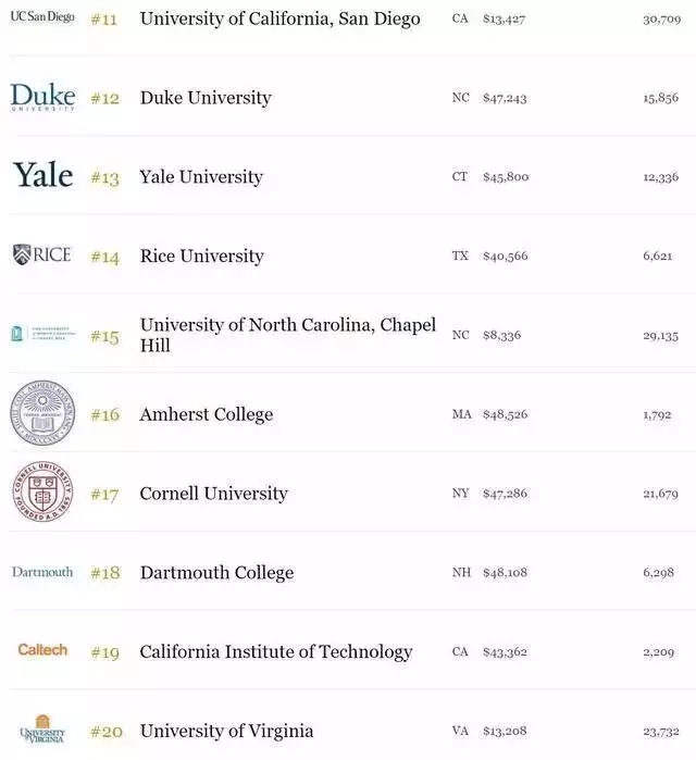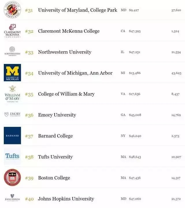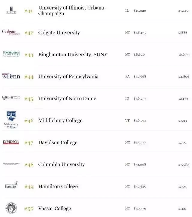2017福布斯美国最有价值大学top50