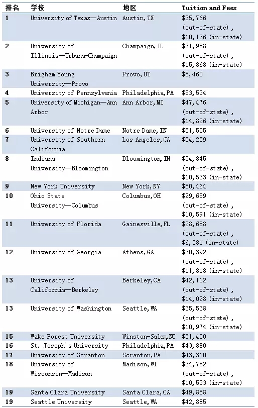 2018年USNews美国最佳本科管理信息系统专业排名