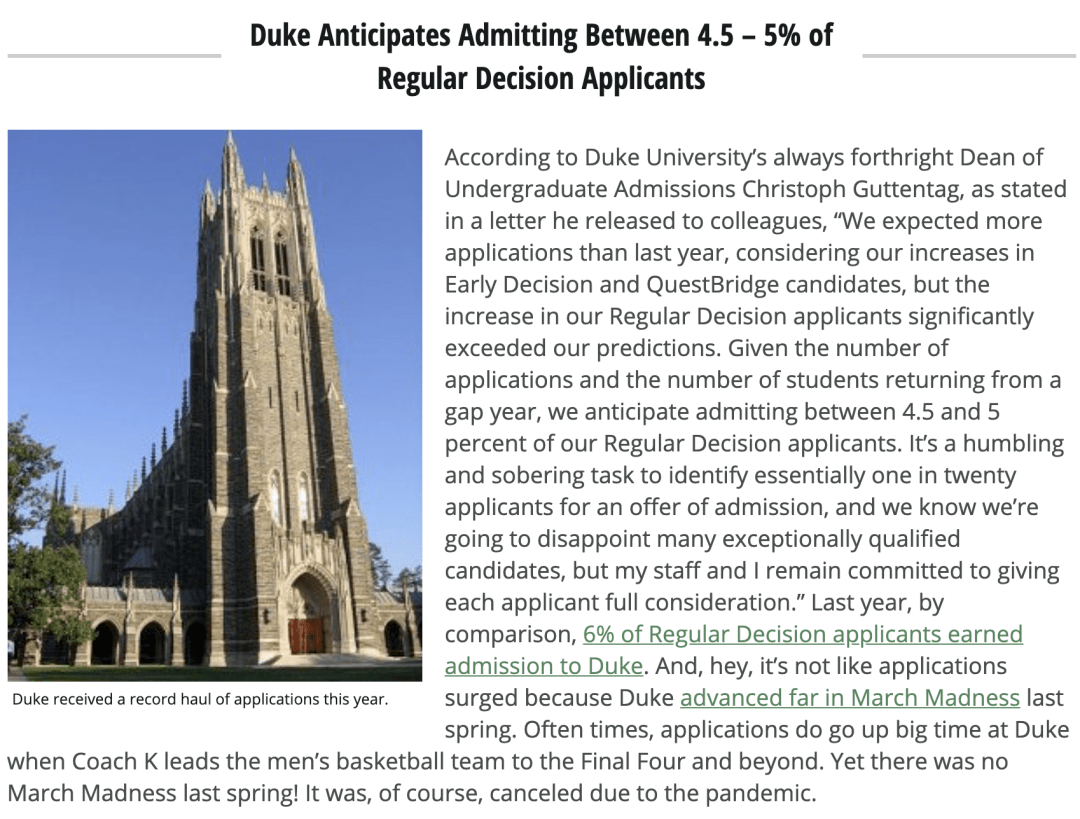 从杜克大学的数字来看,美国精英大学申请人数飙升不仅仅停留在早申阶段,RD阶段恐将继续蔓延这一趋势,竞争将更加激烈。