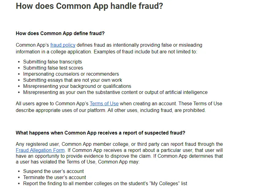 学生在创建自己的帐户时,CA会要求学生阅读并同意CA的使用条款和隐私政策。今年CA则是在条款中新增了【欺诈行为的界定与处理政策】。