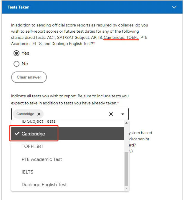 在今年更新的CA系统中,学生现在可以上传剑桥英语成绩来以证明英语水平了。