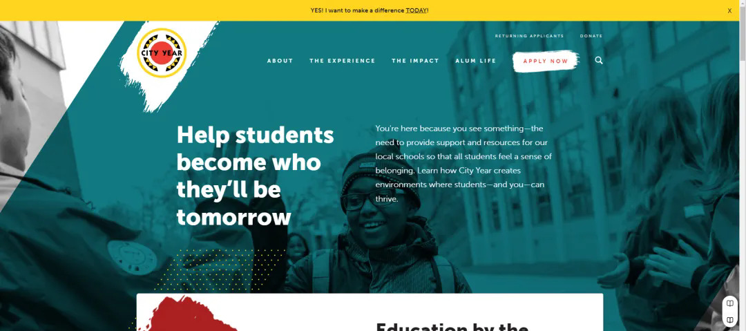 City Year是一个成立于1988年的非营利性教育组织,其旨在团结来自不同背景的年轻人,通过自己的专业知识,帮助低收入地区的学校学生尽力毕业(类似于支教)。