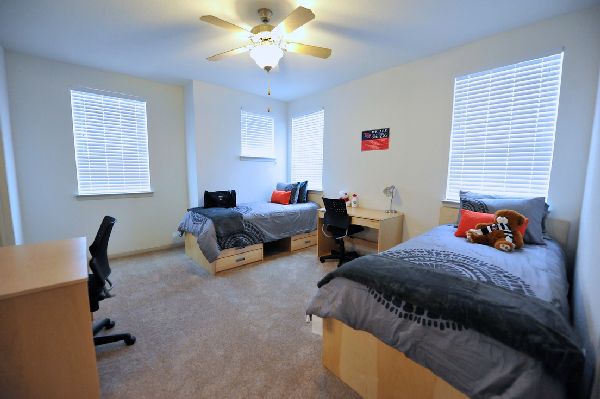 ● 每栋别墅住6个学生,双人间,配有厨房、公共活动区、学习区域