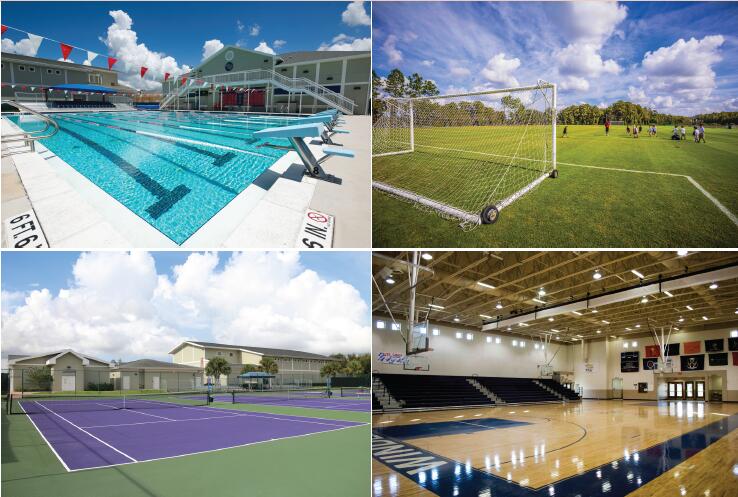 ◆ 学校提供21项体育运动,超过60支体育队伍,高尔夫,网球,游泳运动突出