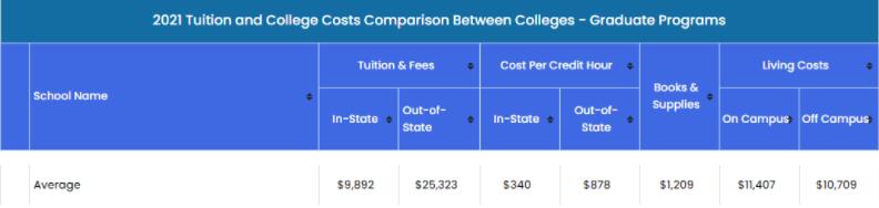 在纽约州的研究生,州外学生平均学杂费为每年$29,726,平均校外住宿费为每年$13,588。而中国学生热门院校如哥伦比亚大学,纽约大学,康奈尔大学,罗切斯特大学都是私立院校,学费相对较高。哥大和纽大由于位于纽约市,住宿费也相对较高了。