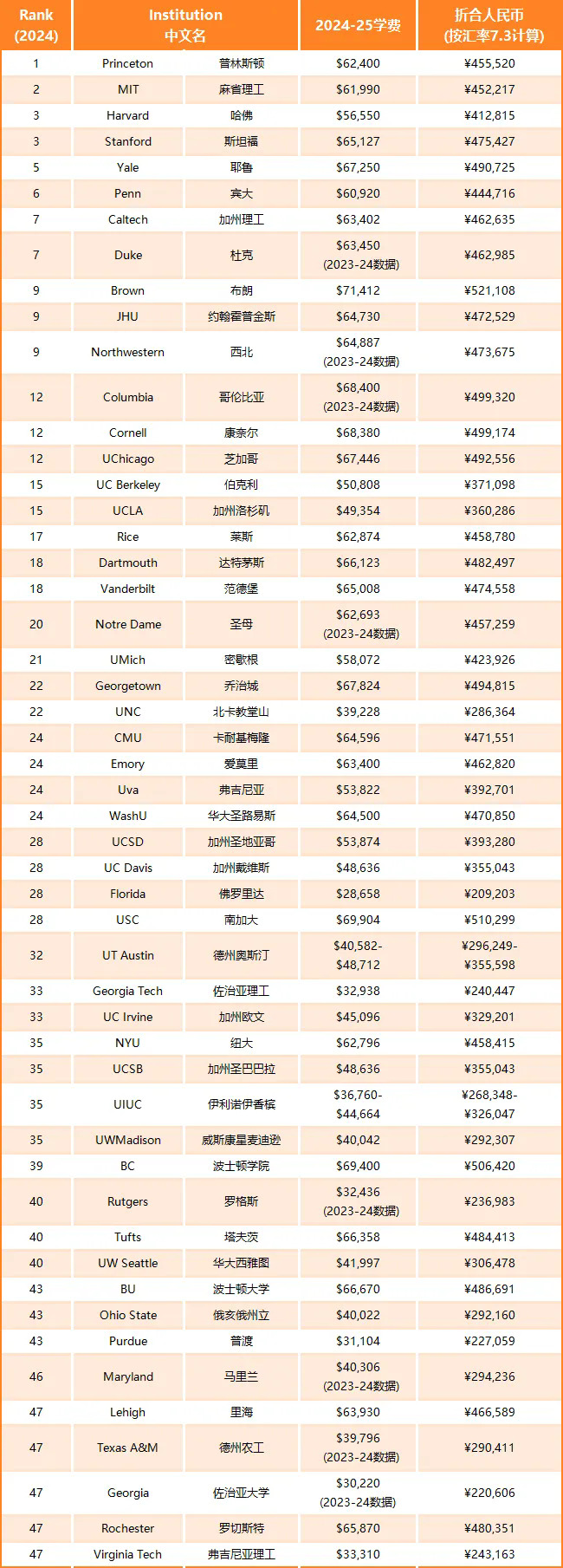 顶尖学府如普林斯顿、斯坦福、布朗、杜克及宾大等已公布2024-25学年学费,普遍高昂且逐年攀升。