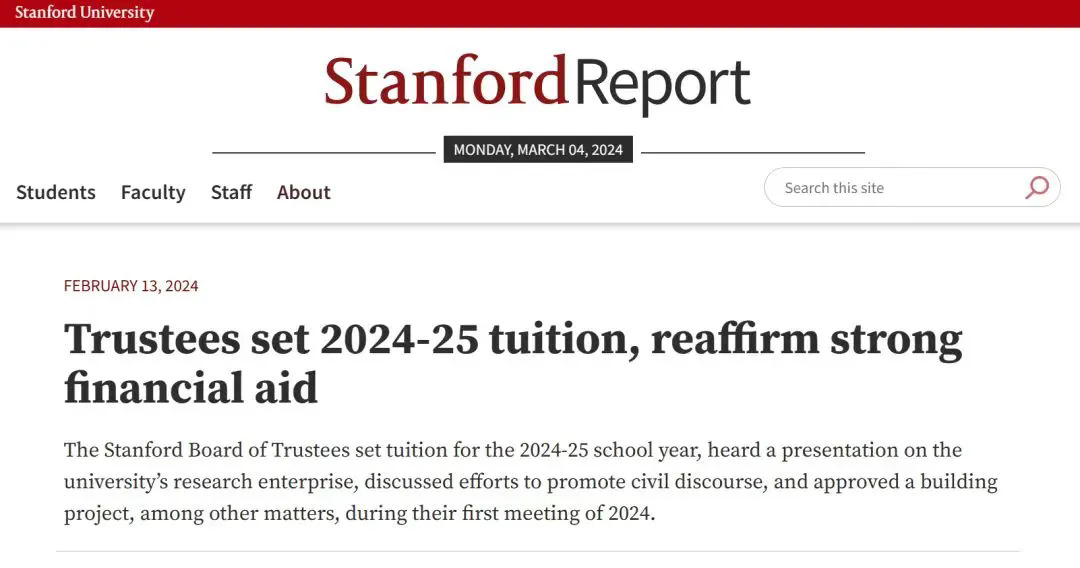 校方表示,此调整旨在巩固斯坦福大学基于需求的综合经济援助项目,同时应对通货膨胀所带来的运营成本上升挑战。