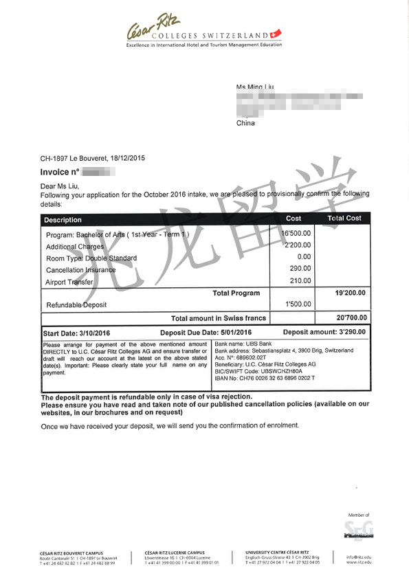 经过兆龙留学网老师的努力,成功为柳同学申请到瑞士恺撒里兹酒店管理大学录取信,以下是他的offer分享,在此祝他留学之路一切顺利!