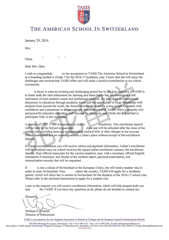 在农历小年来临之际,瑞士美国中学(TASIS—The American School In)的offer无疑是乔同学最好的小年贺礼!乔同学2015年十月参加了兆龙独家举办的中国最权威的北美寄宿中学联展。该生多才多艺、英语口语和听力 俱佳,在展会上给学校招生官留下了深刻的印象。会后,学生家长与兆龙留学陈荣老师、王冬梅老师多次沟通,细致制作该生的申请材料,今天喜获瑞士美国学校 offer!