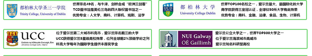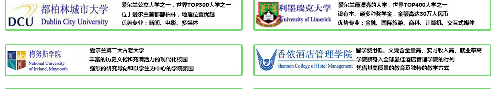 爱尔兰留学签证网隶属于北京兆龙出入境中介服务中心,网站始建于2003年,是中国首家爱尔兰留学专业办理网站,也是最早在中国推广爱尔兰教育的专业机构。爱尔兰留学签证网成立十多年来与爱尔兰各大学建立了稳固良好的合作关系,是爱尔兰各大学授权的在中国招生的直接代理。爱尔兰留学签证网本着“专注成就专业,一切为了学生”的服务理念,十多年来向爱尔兰各个大学输送数千名学生,通过十多年的稳固发展,形成了一支“专业+敬业“的服务队伍,为广大爱尔兰留学生提供热情、专业、耐心、真诚的服务,受到了客户与合作院校的一致认可与好评,同时也在爱尔兰大使馆树立了良好的信誉与口碑。
