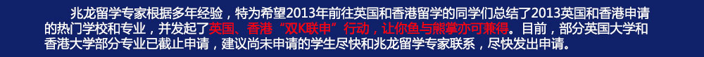 兆龙留学 (教外综资认字(2004)295号) 诚邀全国地方代理 | 网站首页 | 院校申请 | 留学规划 | 热门专业 | 大学排名 | 奖学金 | 特色服务