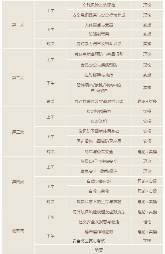 A:高难度技能教学中会保证1:1的师资配比,让学员们在教官保护下进行技能学习,且教官们大多数为退役兵员,有丰富的保护要员经验,学员们的安全完全可以保证。