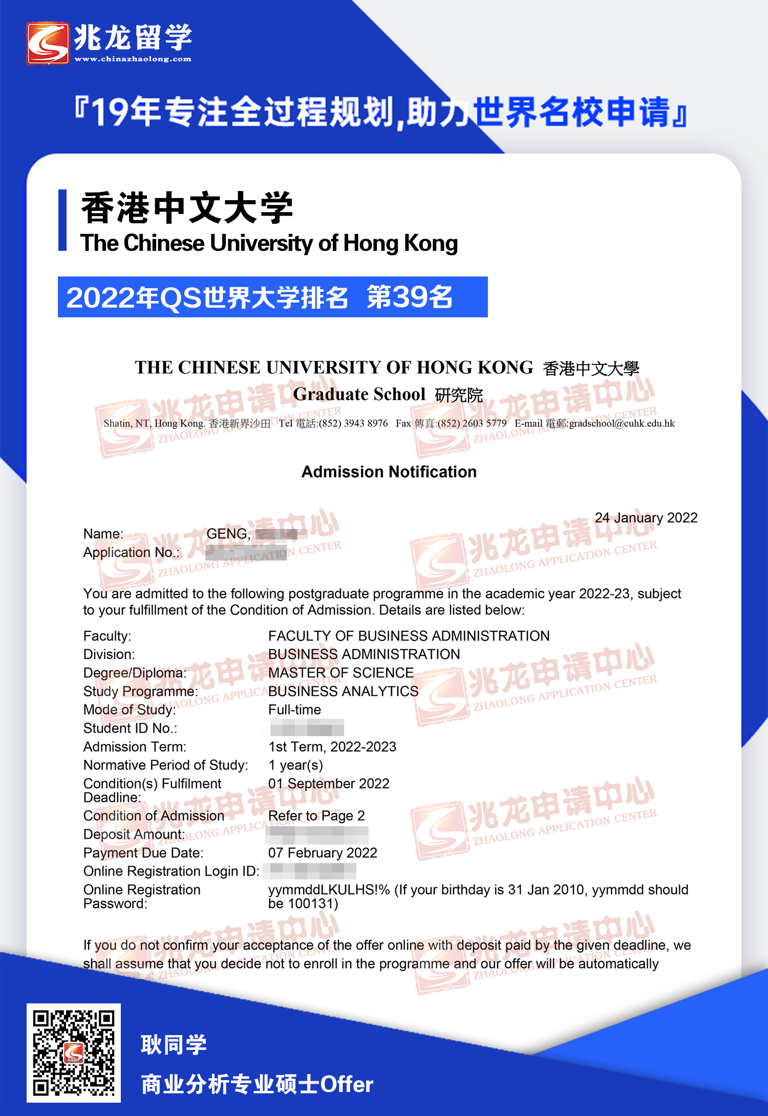 2022年1月:香港中文大学商业分析硕士录取,期待更多好消息