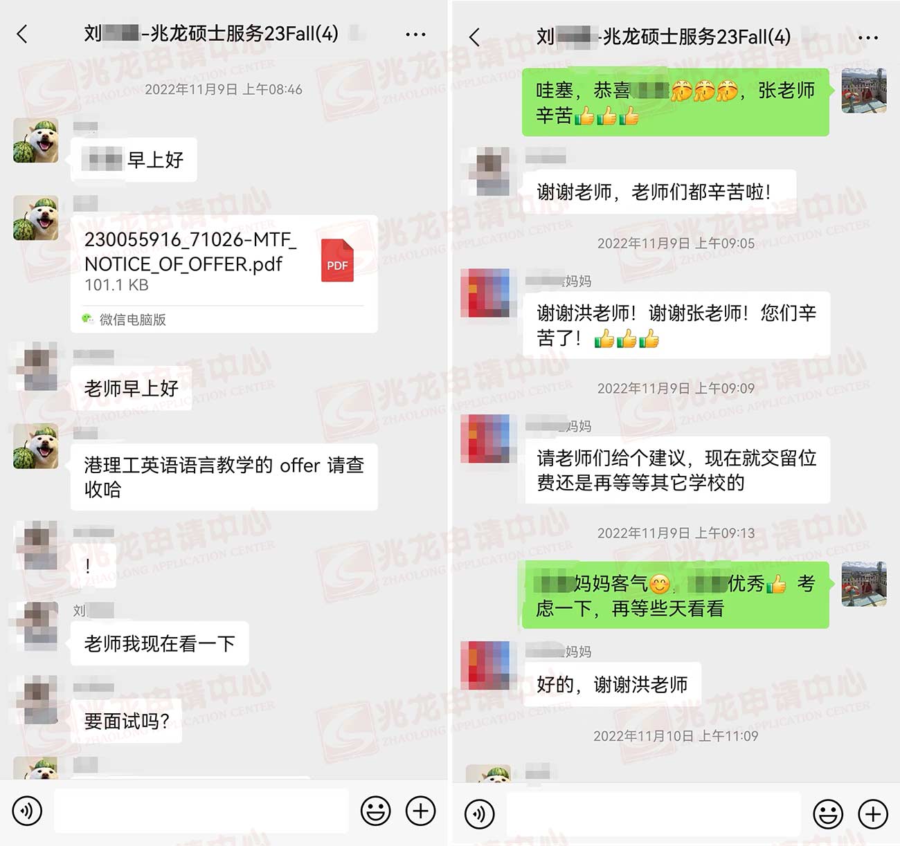 功夫不负有心人,在11月初,刘同学获得了香港理工大学英语语言教学硕士录取!