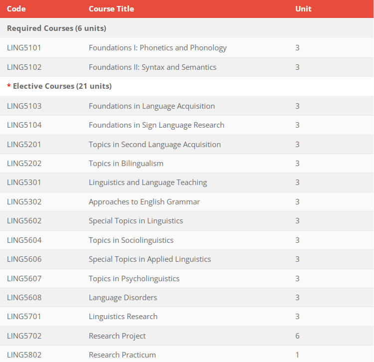 (e) 申请汉语语言学及语言获得专业的学生,必须具有良好的普通话能力,标准如下: