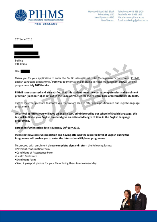经过兆龙留学网老师的努力,成功为江同学申请到新新西兰太平洋酒店管理学校录取,以下是他的offer分享,在此祝他留学之路一切顺利!