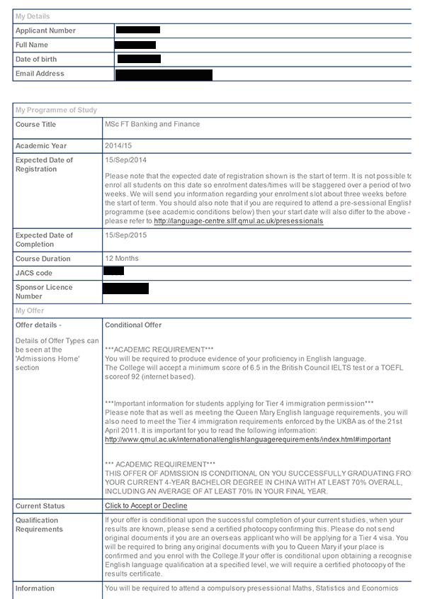 恭喜中国海洋大学于同学获得皇后玛丽大学MSc FT Banking and Finance OFFER