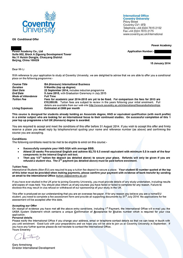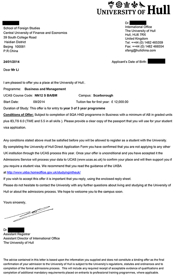 恭喜李同学获得英国赫尔大学与考文垂大学OFFER