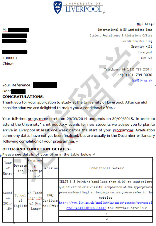经过兆龙留学老师的努力,成功为卫同学英国利物浦大学的录取,以下是他的offer分享,在此祝他留学之路一切顺利!