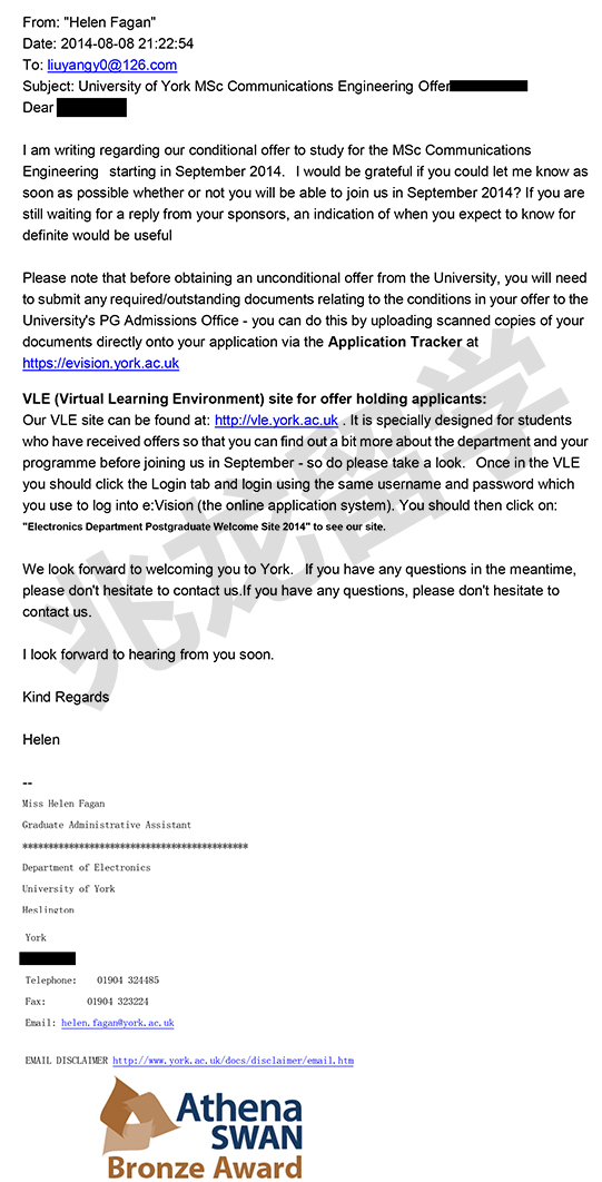 经过兆龙留学网老师的努力,成功为刘同学申请到英国约克大学录取,以下是他的offer分享,在此祝他留学之路一切顺利!