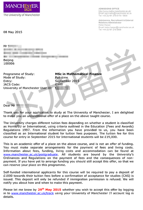 经过兆龙留学网老师的努力,成功为鲁同学申请到英国曼彻斯特大学录取,以下是他的offer分享,在此祝他留学之路一切顺利!