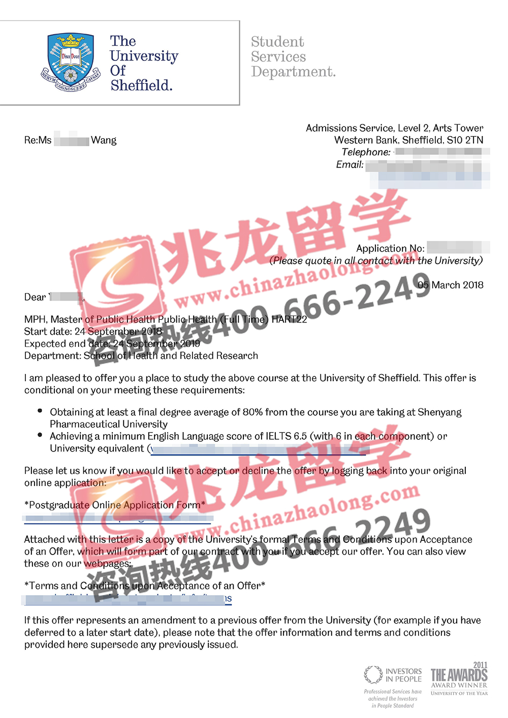 经过兆龙留学英国部老师的努力,成功为王同学申请到英国谢菲尔德大学公共健康(管理和领导)专业offer,以下是她的offer分享,在此祝她留学之路一切顺利!更多英国留学申请信息请拨打咨询热线400-666-2249。