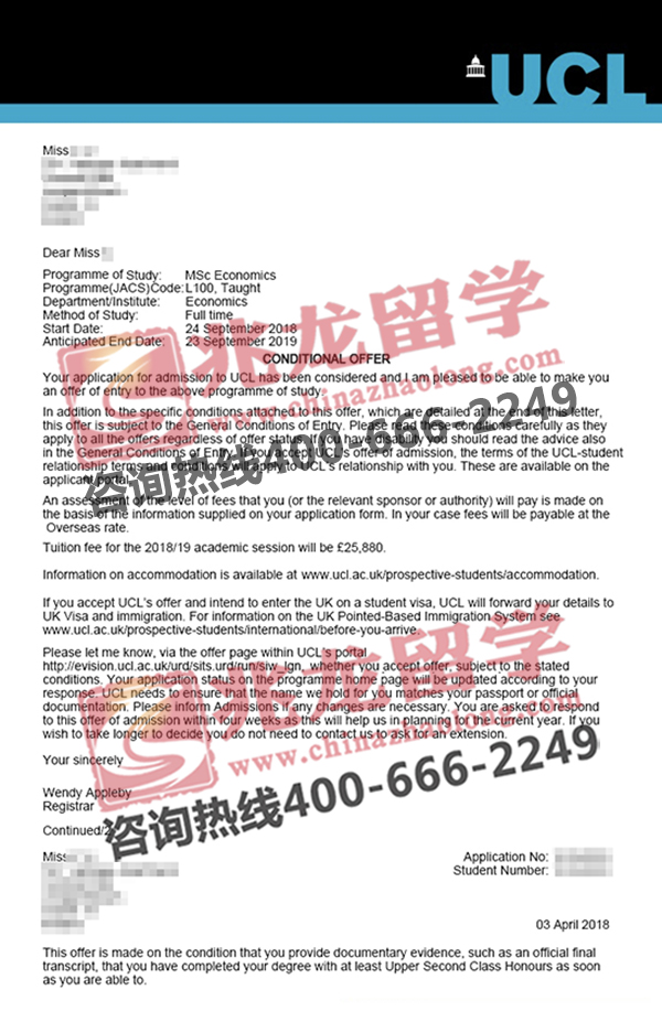 经过兆龙留学英国部老师的努力,成功为李同学申请到英国伦敦大学学院经济硕士offer,以下是她的offer分享,在此祝她留学之路一切顺利!更多英国留学申请信息请拨打咨询热线400-666-2249。