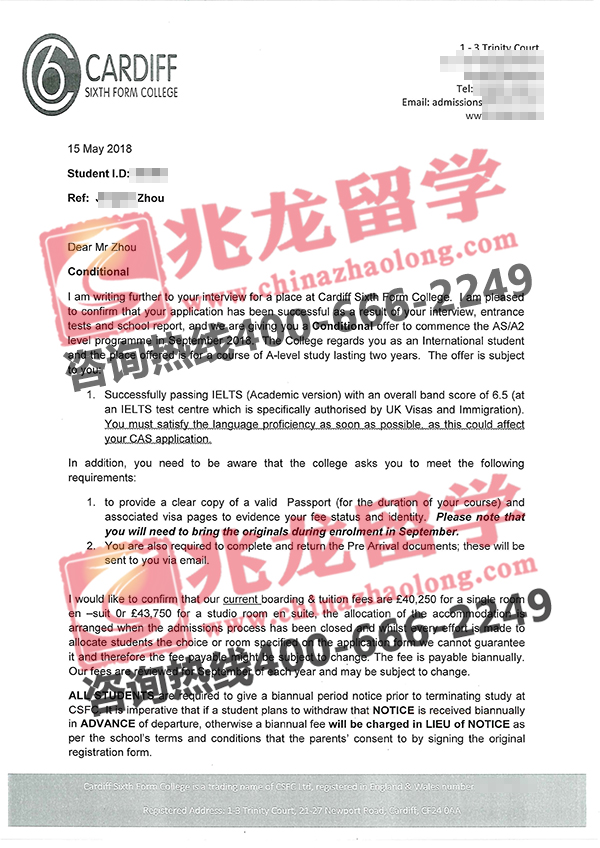 经过兆龙留学欧洲部老师的努力,成功为周同学申请到英国卡迪夫学院A-level-offer,以下是他的offer分享,在此祝他留学之路一切顺利!更多英国留学申请信息请拨打咨询热线400-666-2249。