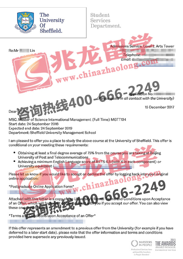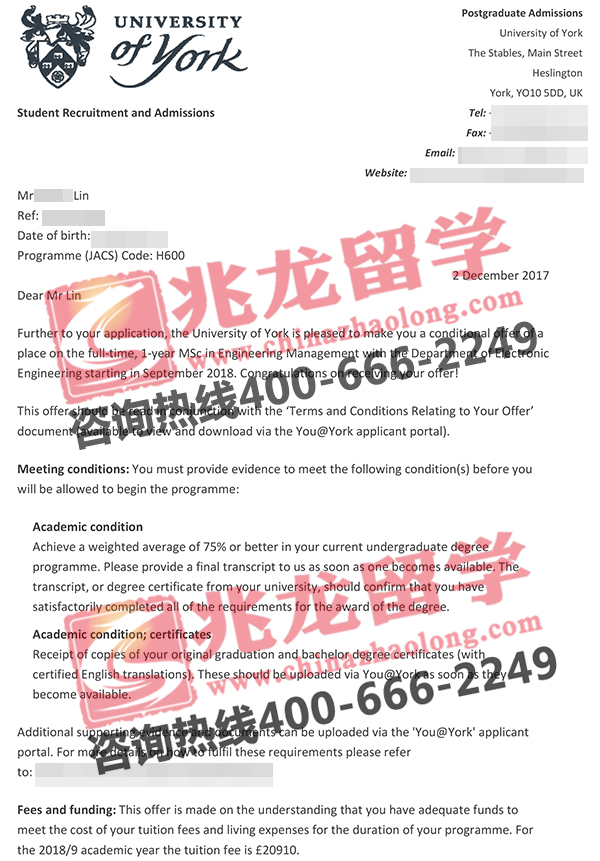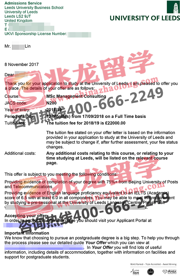 恭喜北京邮电大学本科通信工程专业林同学喜获英国利兹大学管理咨询硕士专业offer和谢菲尔德大学国际管理硕士专业offer以及约克大学工程管理(电子工程方向)硕士专业offer。
