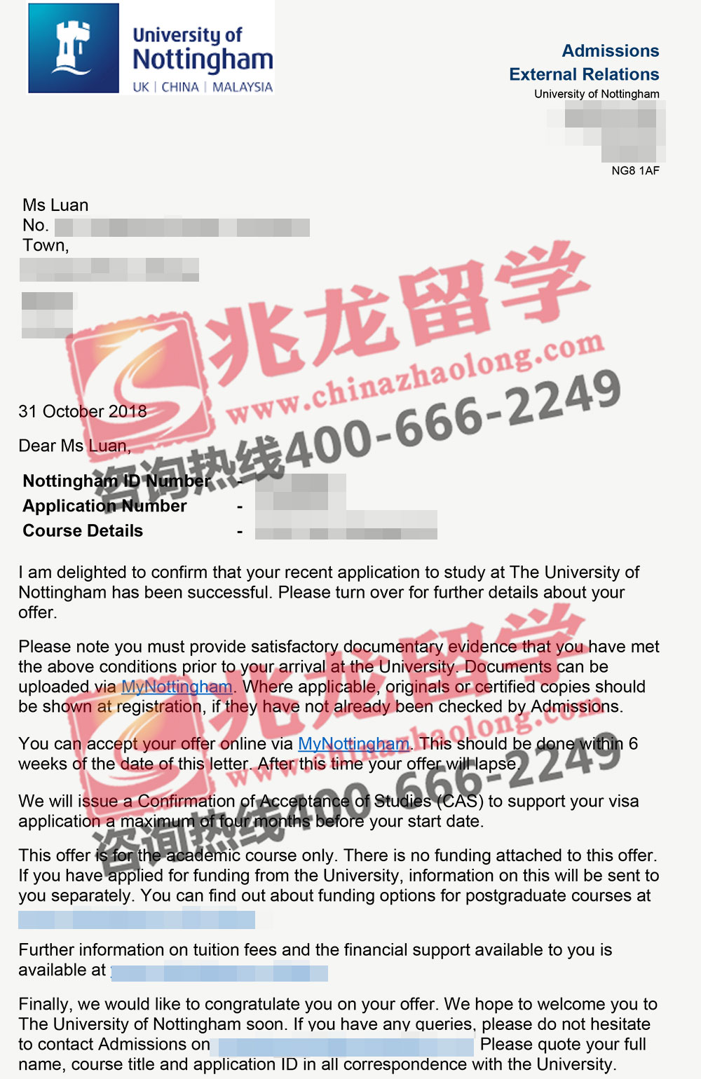 经过兆龙留学欧洲部老师的努力,成功为栾同学申请到英国诺丁汉大学风险管理专业硕士offer,以下是学生offer分享,在此祝她留学之路一切顺利!更多英国留学申请信息请拨打咨询热线400-666-2249。