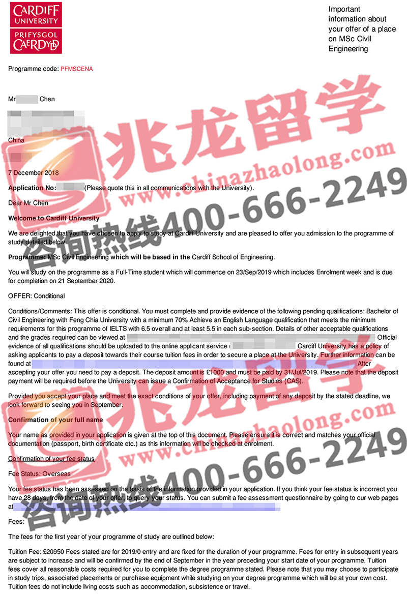 经过兆龙留学英国部老师的努力,成功为陈同学申请到英国卡迪夫大学土木工程专业硕士Offer,以下是她的offer分享,在此祝她留学之路一切顺利!更多英国留学申请信息请拨打咨询热线400-666-2249。