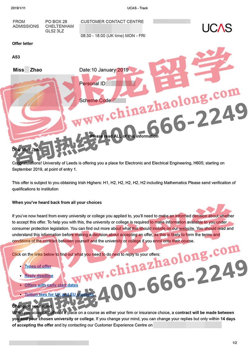 经过兆龙留学英国部老师的努力,成功为赵同学申请到英国利兹大学电子电气工程专业Offer,以下是她的offer分享,在此祝她留学之路一切顺利!更多英国留学申请信息请拨打咨询热线400-666-2249。