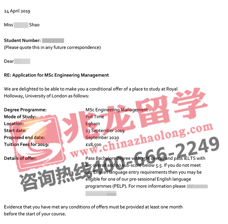 经过兆龙留学英国部老师的努力,成功为邵同学申请到英国皇家霍洛威大学工程管理专业硕士Offer,以下是她的offer分享,在此祝她留学之路一切顺利!更多英国留学申请信息请拨打咨询热线400-666-2249。