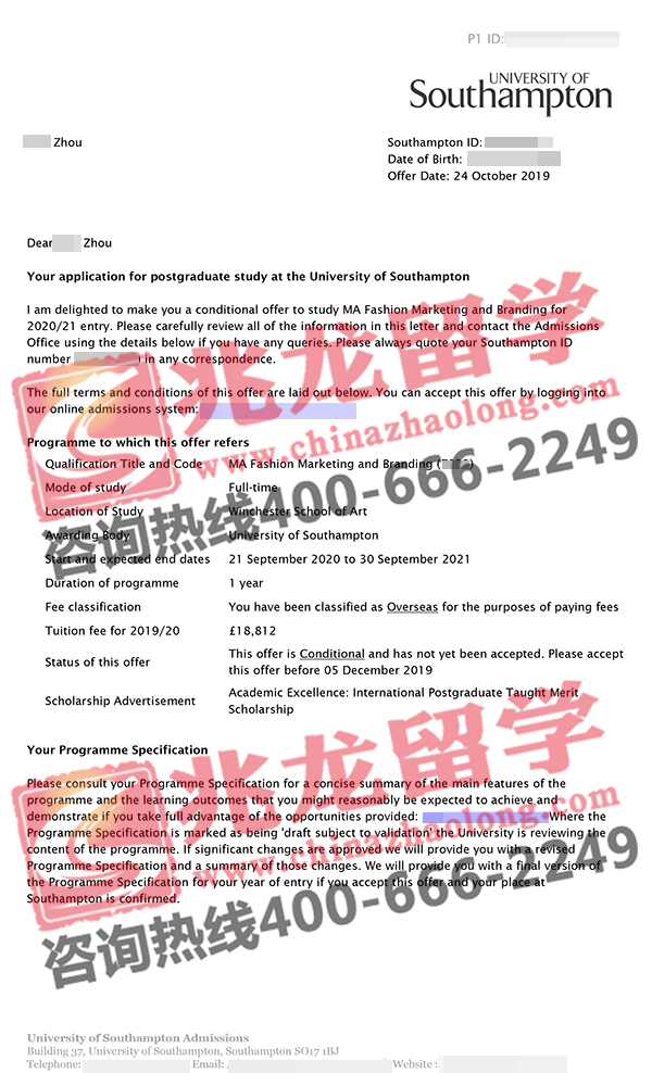 经过兆龙留学英欧部老师的努力,成功为周同学申请到英国南安普顿大学时尚品牌营销硕士Offer,以下是她的offer分享,在此祝她留学之路一切顺利!更多英国留学申请信息请拨打咨询热线400-666-2249。