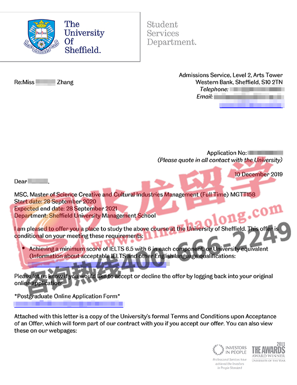 经过兆龙留学英国部老师的努力,成功为张同学申请到英国谢菲尔德大学创意文化产业管理专业硕士Offer,以下是她的offer分享,在此祝她留学之路一切顺利!更多英国留学申请信息请拨打咨询热线400-666-2249。