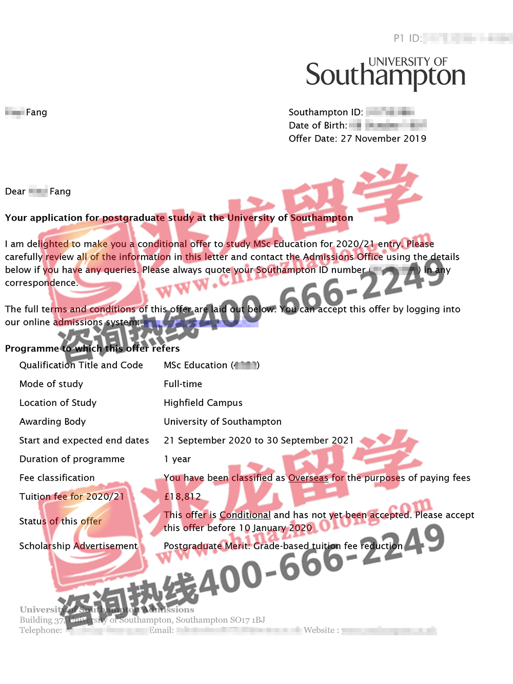 经过兆龙留学英国部老师的努力,成功为方同学申请到英国南安普顿大学教育学专业Offer,以下是她的offer分享,在此祝她留学之路一切顺利!更多英国留学申请信息请拨打咨询热线400-666-2249。