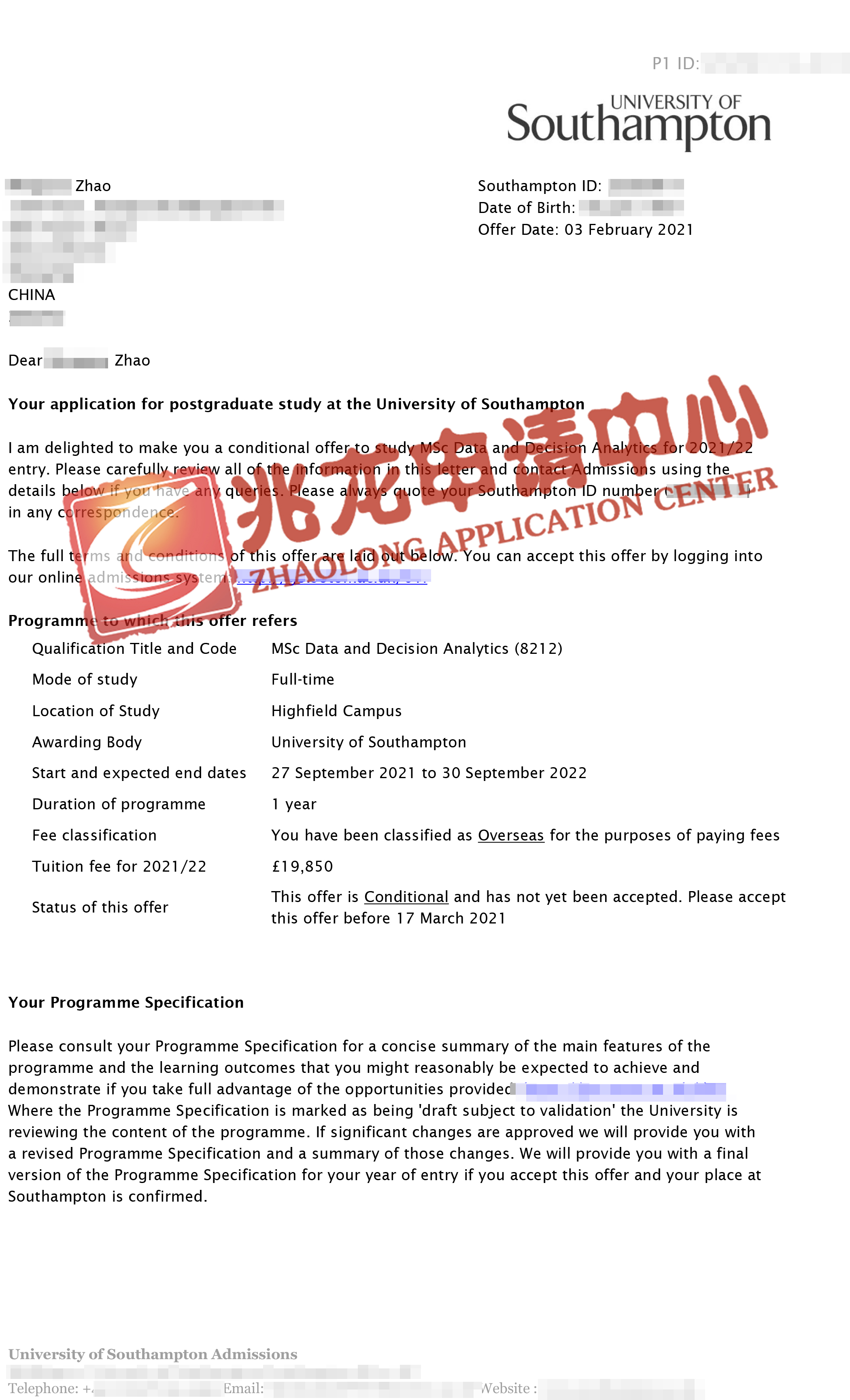 小年惊喜:北京师范大学-香港浸会大学联合国际学院统计专业GOA2.8,跨专业申请,获得英国University of Southampton (南安普顿大学)MSc in Data and Decision Analytics(数据与决策分析硕士) offer。