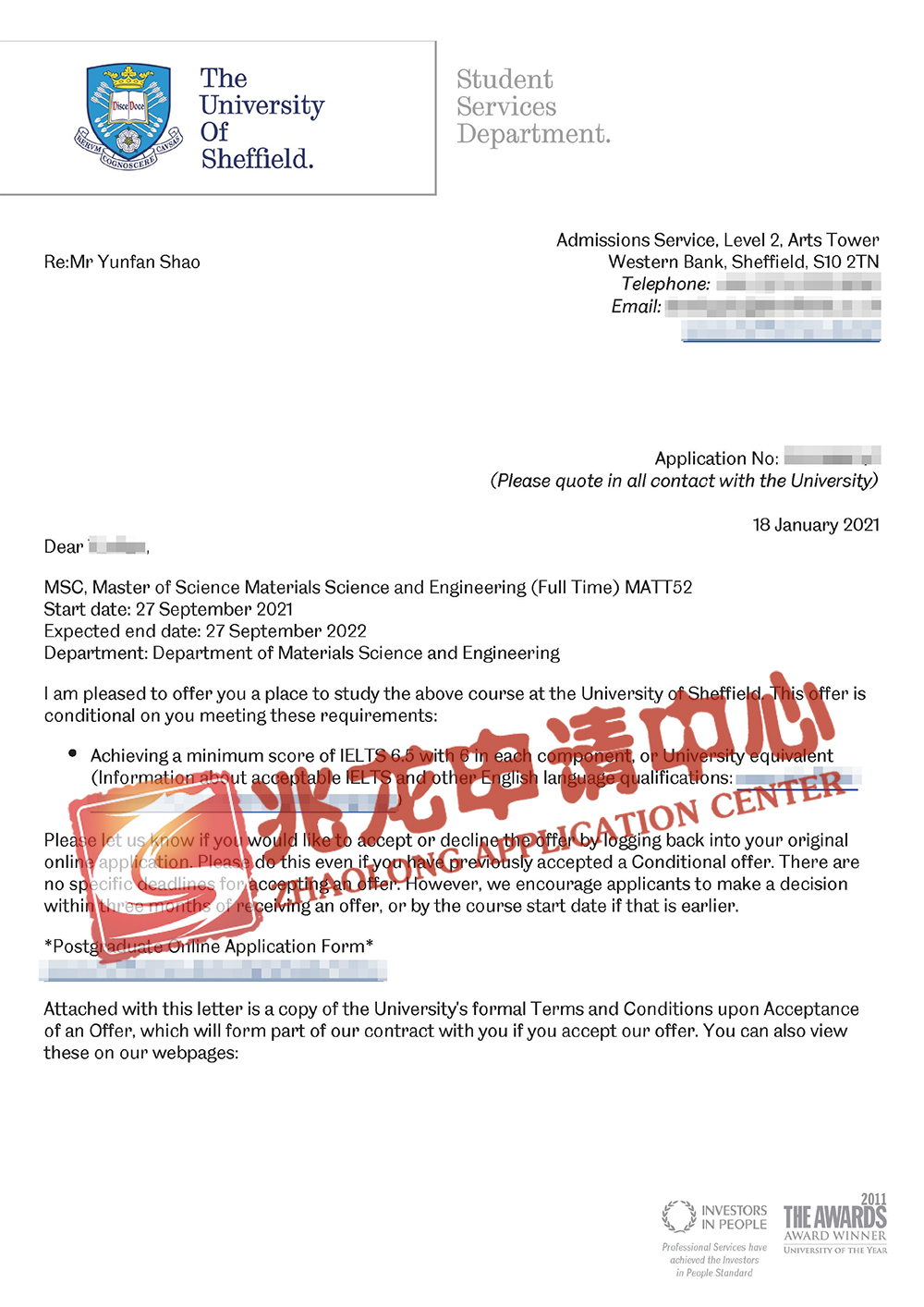 录取院校:University of Sheffield谢菲尔德大学