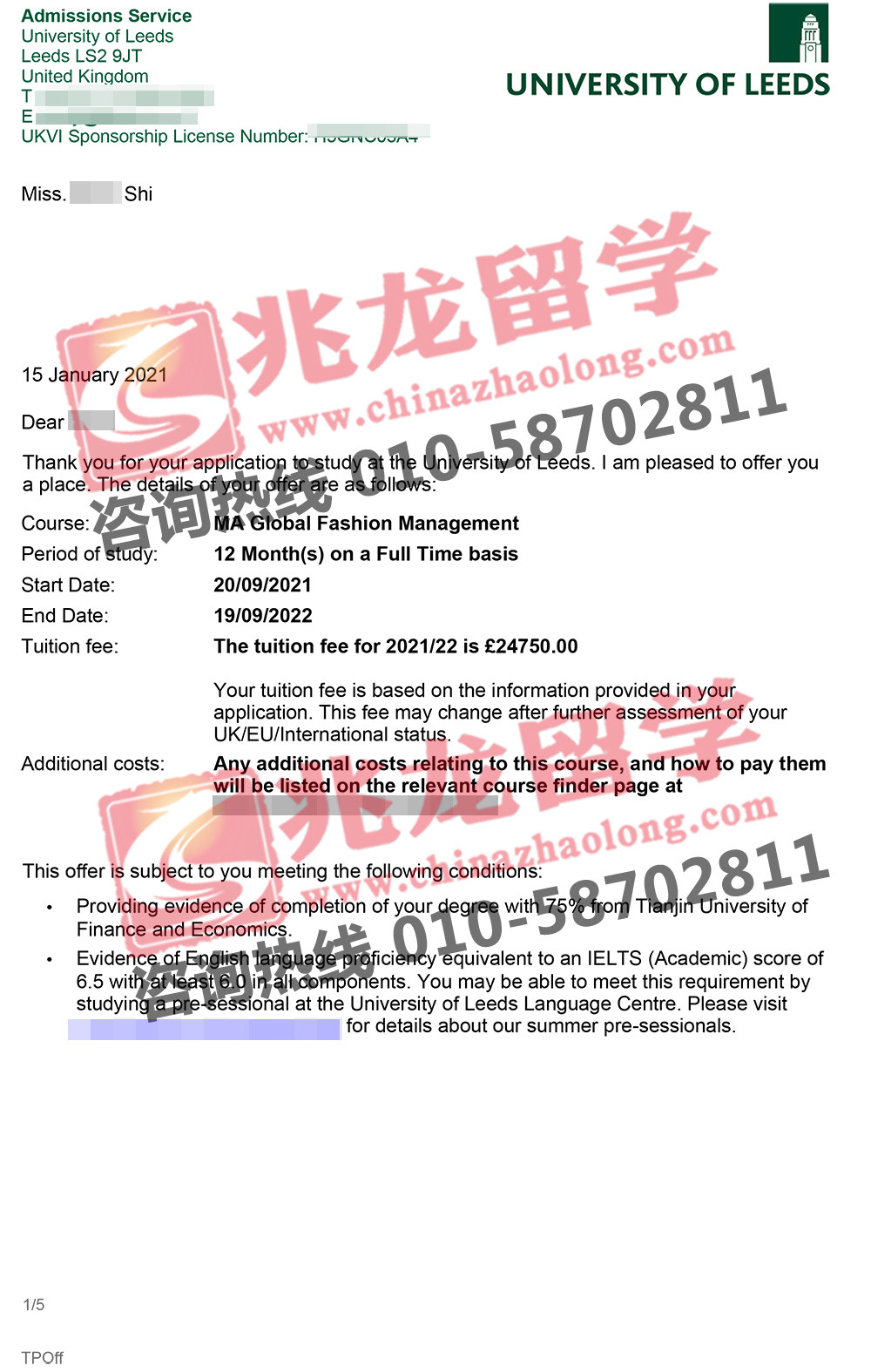 录取院校:University of Leeds 利兹大学